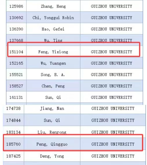 2025年9月19日,美国斯坦福大学(Stanford University)与爱思唯尔(Elsevier)联合发布了第八版《全球前2%顶尖科学家榜单2025》(World’s Top 2% Scientists 2025)。该榜单依托Scopus数据库的引用数据进行系统分析,从全球近700万名科学家中,依据“生涯影响力”和“年度影响力”两项指标,遴选出世界排名前2%的顶尖科学家。其中,中国有12374位学者入选“终身榜”,31685位学者入选 “2025 年度榜”。我院冯毅雄教授、彭庆国副教授亦榜上有名,成功入选2025年全球前2%顶尖科学家“年度影响力”榜单,如图1所示。