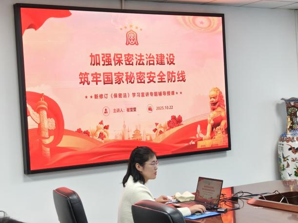 最后,由先进技术研究院崔雯雯老师为同学们进行了专题辅导授课。崔老师以“加强保密法治建设,筑牢国家秘密安全防线”为主题,围绕新修订《保密法》的核心要义和重点内容进行了系统宣讲和深入解读。她结合高校科研工作的特点,详细讲解了在日常科研活动、涉密人员管理、载体保管、信息公开等过程中可能存在的泄密风险点及防范措施,内容详实,案例生动,使同学们对保密法律法规有了更清晰的理解,对如何在实际科研工作中履行保密职责有了更明确的认识。