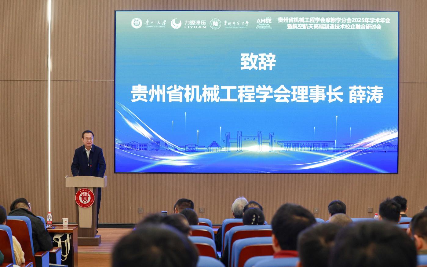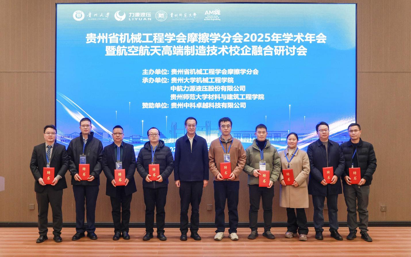2025年12月12日,贵州省机械工程学会摩擦学分会2025年学术年会暨航空航天高端制造技术校企融合研讨会在贵州大学西校区德正楼120报告厅成功举行。本次会议由贵州省机械工程学会摩擦学分会主办,贵州大学机械工程学院、中航力源液压股份有限公司、贵州师范大学材料与建筑学院承办。来自全国高校、科研院所及省内20余家企业的专家学者及学生100余人齐聚贵大,共探摩擦学前沿突破与产业转化新路径。