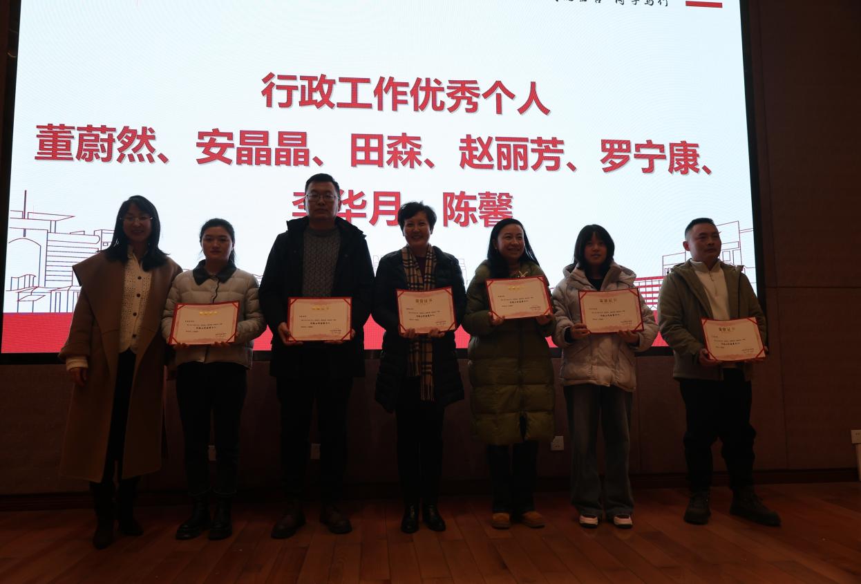 2025 年度先进表彰同步举行,涵盖教育教学、科学研究、行政工作三类优秀个人、年度突出贡献个人及 4 个优秀团队,获奖代表获现场颁奖。