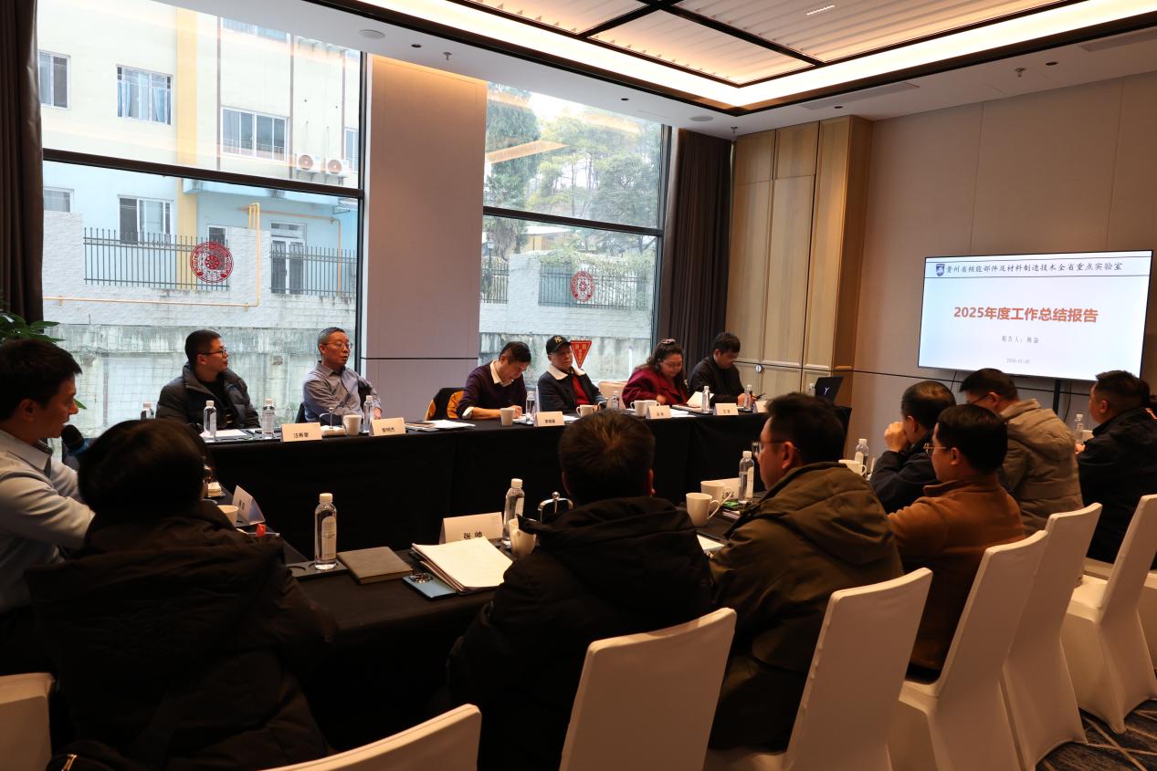 1月20日下午,贵州省核能部件及材料制造技术全省重点实验室(以下简称“实验室”)2025年度总结暨学术交流会在贵阳圆满召开。昆明理工大学国家级人才李萌蘖教授、贵州省装备制造业协会研高工黎明杰、贵州师范大学苏明教授等省内外行业专家、贵州航天新力科技有限公司董事长万东海等企业代表、贵州大学机械工程学院副院长冯治国教授及实验室副主任梅益教授等核心骨干齐聚一堂,全面复盘年度研究进展与核心成果,深入研讨2026年发展规划及产业技术需求,为贵州省核能材料产业高质量发展凝聚共识、夯实根基。本次会议由实验室副主任梅益教授主持。
