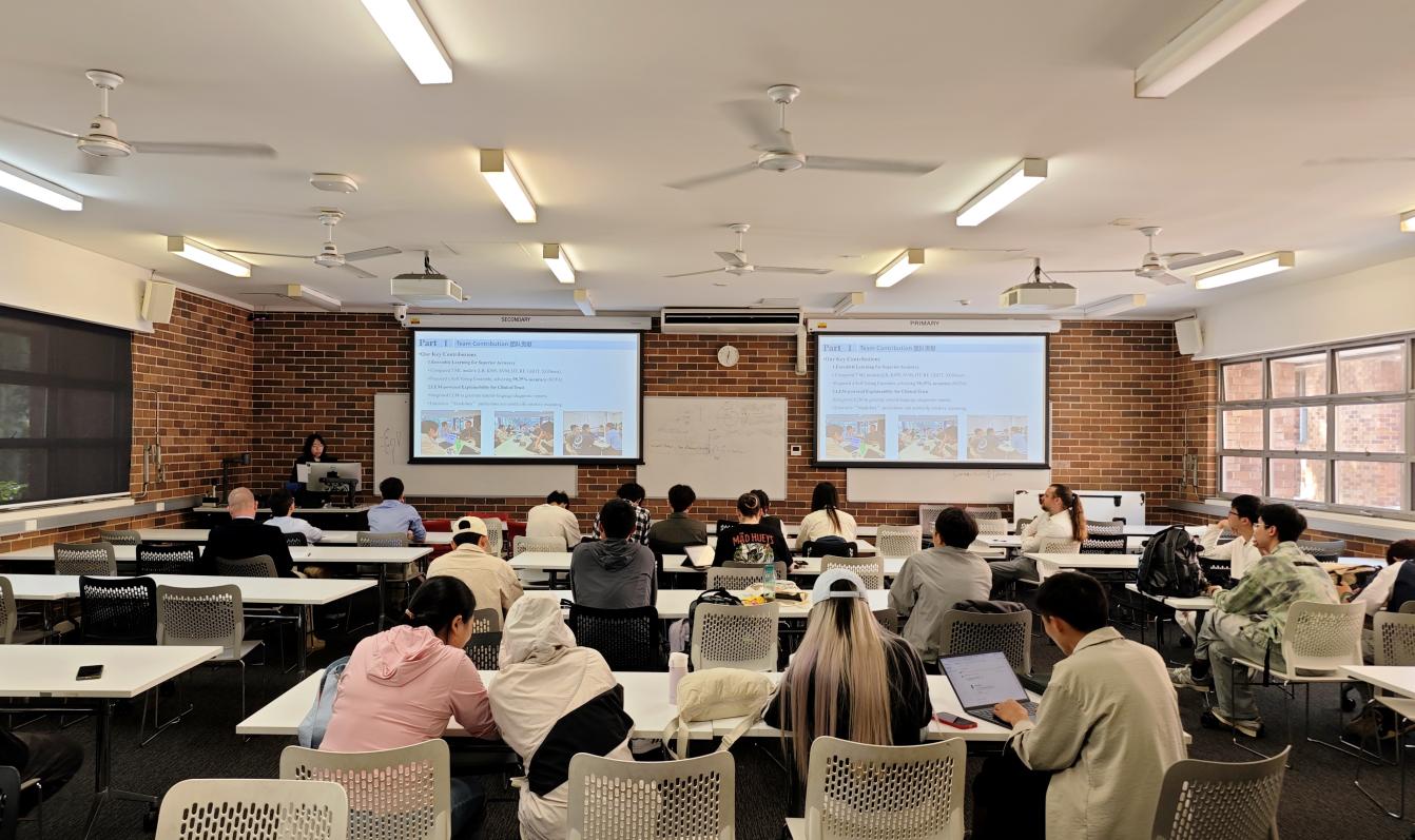访学过程中,小组项目汇报成为检验学生学习成效与团队协作能力的重要环节。学生们围绕医疗健康、冰川河流可视化、AI小游戏开发等课题展开深入研究。从项目选题、方案设计到具体实施都倾注心血。汇报现场,各小组代表运用流利英文,结合PPT和视频DEMO全面展示项目成果,并与当地师生进行热烈交流、讨论。通过项目汇报,学生们不仅锻炼了表达能力,更在国际舞台上展示了贵大学子的专业素养和创新风采。