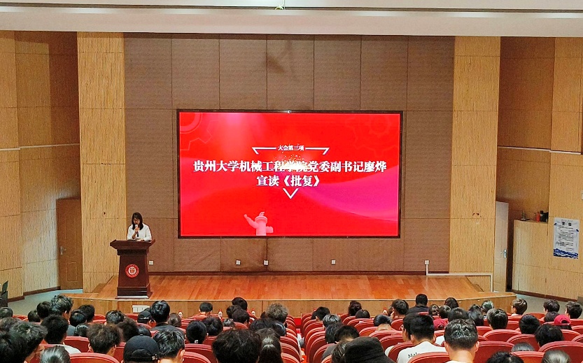 党委副书记廖烨宣读《关于同意召开贵州大学机械工程学院第十五次学生代表大会暨第二十一次研究生代表大会的批复》。