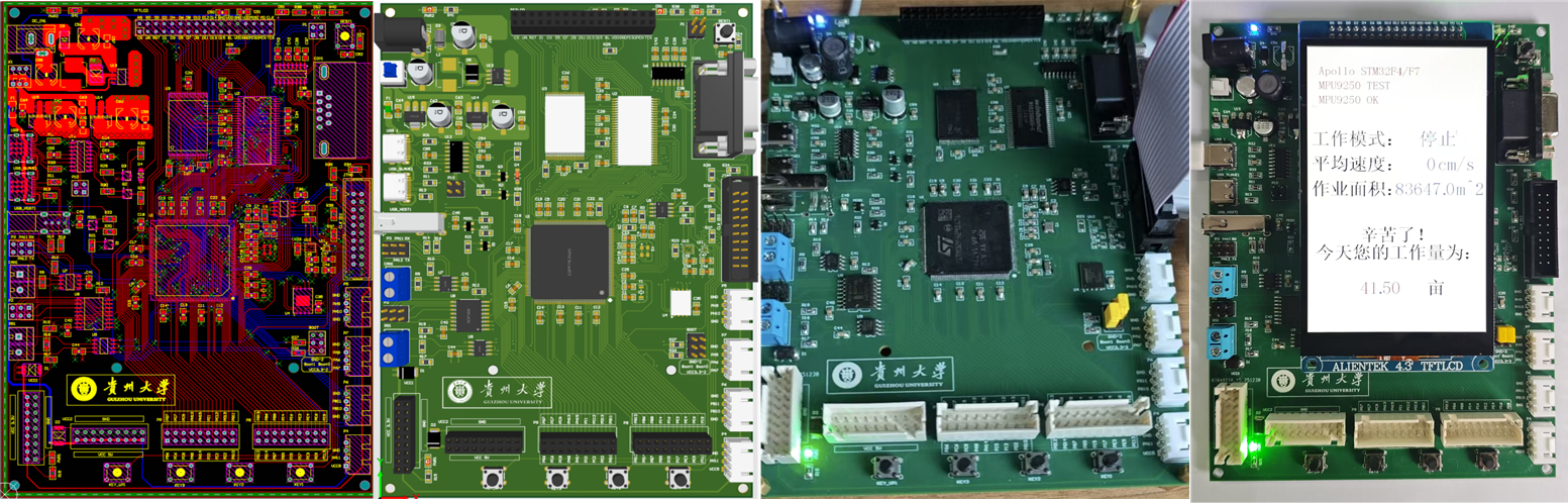 团队以MCU主控芯片为核心研发了专用控制主板,作为整个系统的“智慧大脑”。该主控板集成了电源管理、信号采集、数据处理、通信接口等全功能模块,通过“感知-决策-执行”的智能控制,实现多级随速施肥、等厚起垄、机具姿态控制与可视化输出等核心功能。