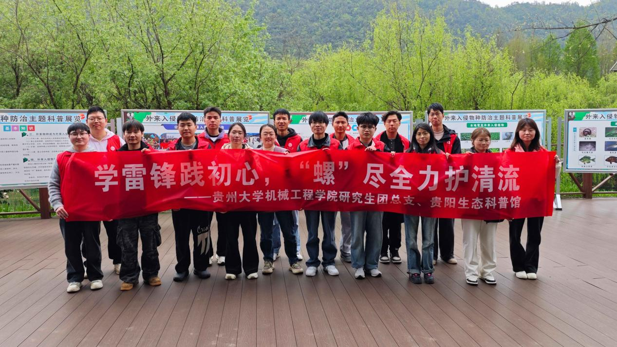 326,贵州大学机械工程学院研究生团总支联合贵阳生态科普馆,在十里河滩开展“‘螺’尽全力,还河流以清净”雷锋月志愿服务活动,活动紧扣“追‘锋’行,志青春,共同奋进‘十五五’”主题,将雷锋精神传承与生态保护深度融合